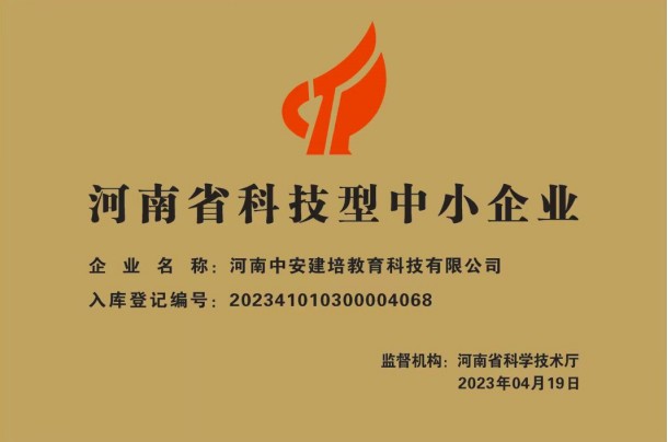 近日,河南省科學技術(shù)廳發(fā)布關(guān)于“河南省2023年第三批入庫科技型中小企業(yè)名單公告”。通過審核、公示等環(huán)節(jié),河南中安建培教育科技有限公司(簡稱“河南中安建培”)獲評“河南省科技型中小企業(yè)”稱號...